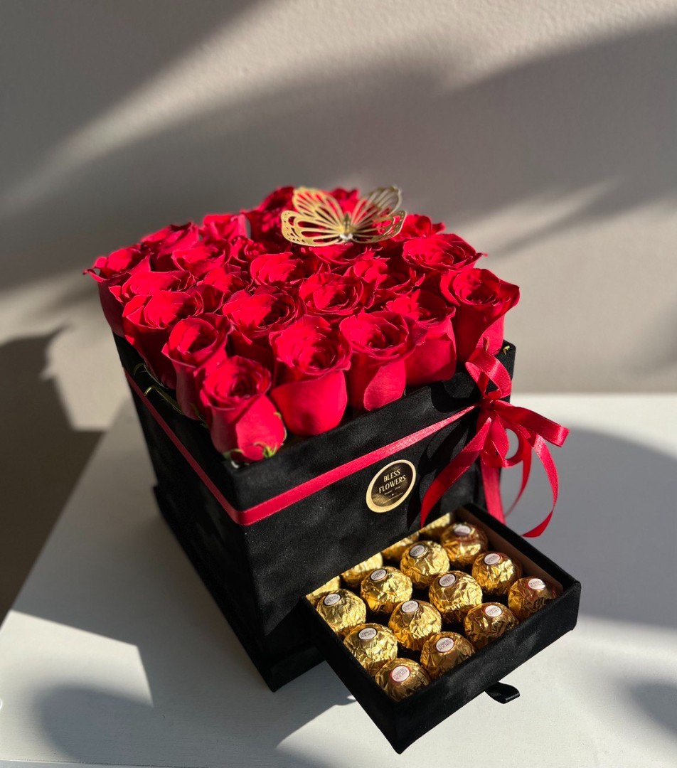 25 red roses with chocolate