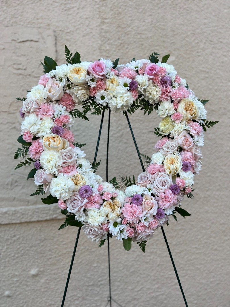 Unique funeral wreath with white roses